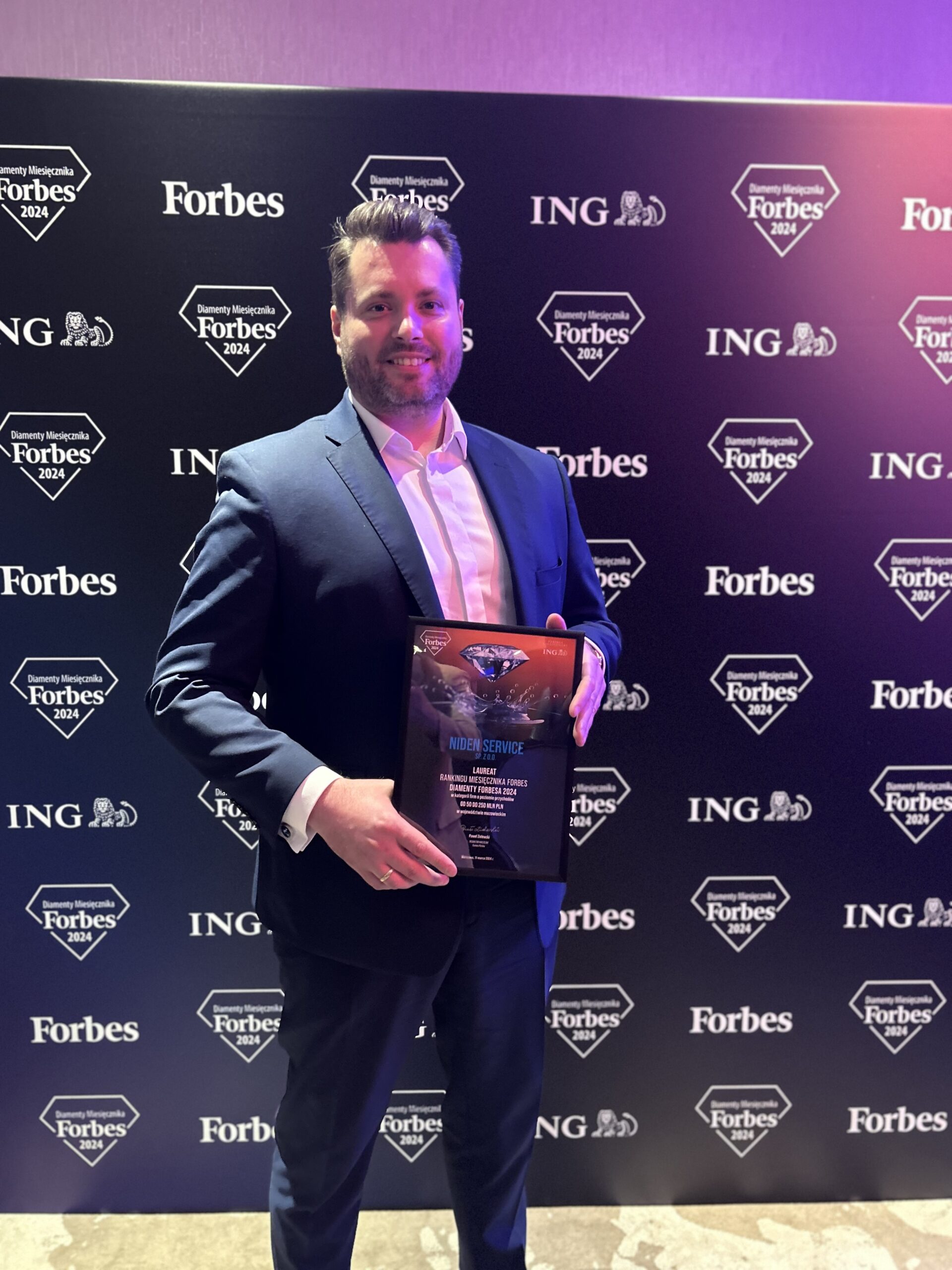 11 marca 2024 r. w Warszawie odbyła się Gala Diamenty Forbesa 2024, podczas której jedna z naszych spółek Niden - Niden Service otrzymała nagrodę wśród najbardziej dynamicznych firm z przychodami do 250 mln zł.